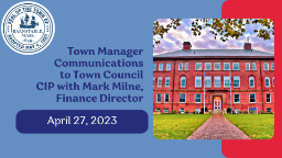 - Town Manager Communications to Town Council - Finance Director Mark Milne CIP Overview